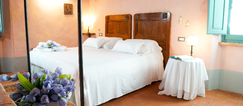 Each room is particular in color and history. Equipped with a double bed with the possibility of adding a single bed or a cot.